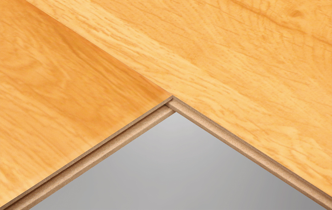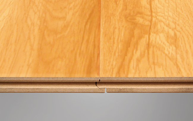 双拼的展示能够更加清楚直观地看到地板的拼接实情,采用德国生产线生产的R型槽口,不下灰、易清洁。