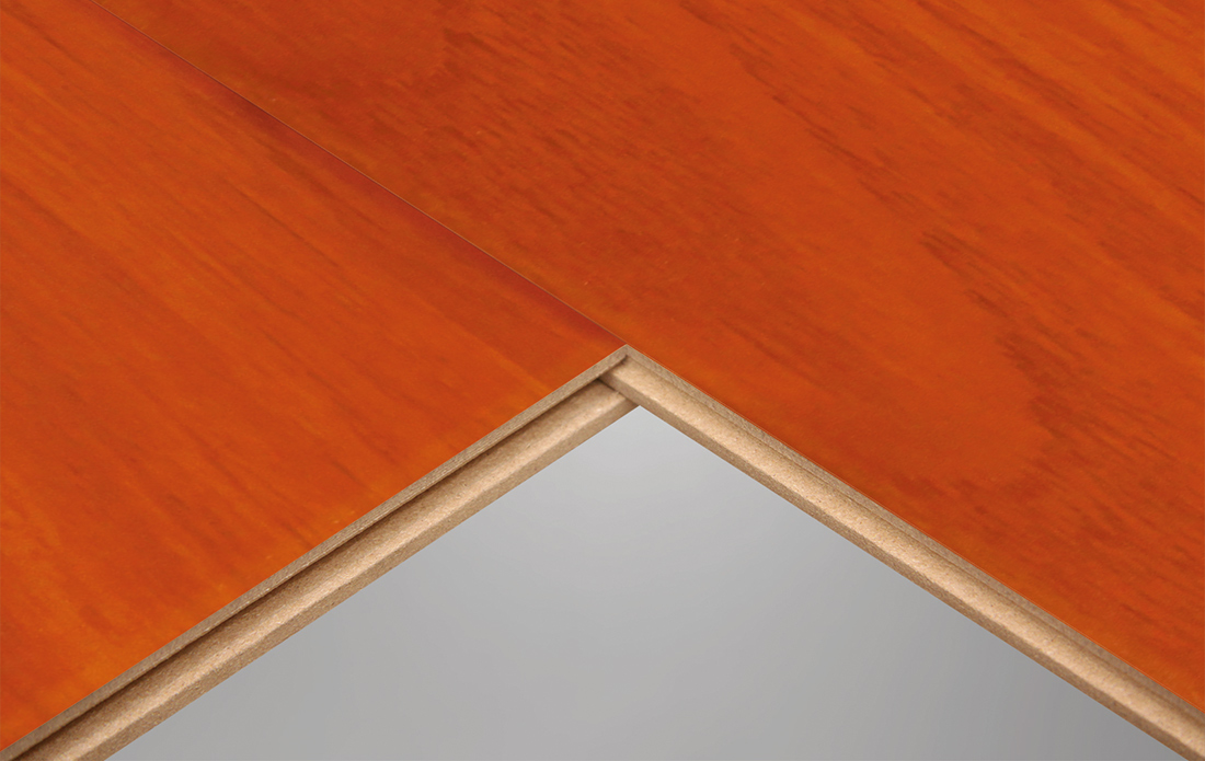 双拼的展示能够更加清楚直观地看到地板的拼接实情,采用德国生产线生产的R型槽口,不下灰、易清洁。